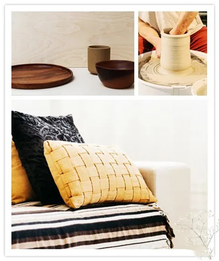 宅在家除了網購和追劇,也促使家中出現了更多DIY的手做成果,繪畫、縫紉、捏陶、編織…等。藤、麻等植物纖維做成的編織品,可展現各地民俗文化的特色,并直接感受來自大自然的天然紋理材質。另外毛線除了織衣服外,與樹枝、石頭、玻璃瓶碰撞出的妙搭效果,各種創作讓每一個家居空間更有魅力。