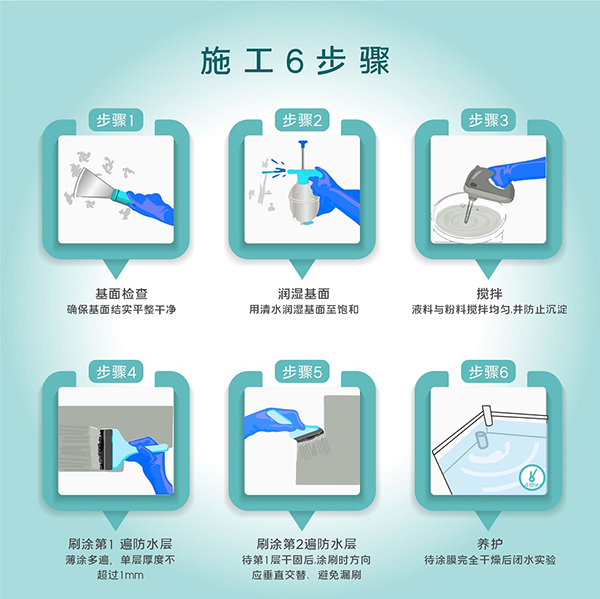為雙組份聚合物改性水泥防水涂料,適用于多種建筑基面,能夠滲透到底材內(nèi)部形成枝蔓狀結(jié)晶體,隔斷結(jié)構(gòu)內(nèi)的水分子通道,迅速固化,從而起到防水效果。并具有良好的耐水性、耐堿性、粘結(jié)強度高等特性。