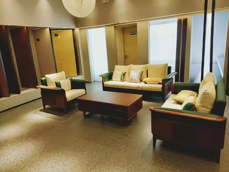 此區有面與面交疊的色板產生的空間立體感,在燈光的渲染下,產生特有的節奏和韻律,滲透出寫意之感,置身其中洽談業務、尋找靈感再適合不過了!