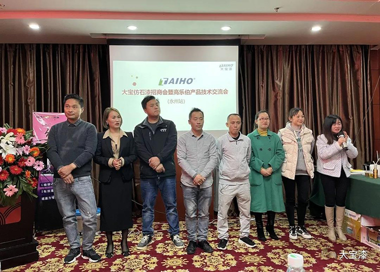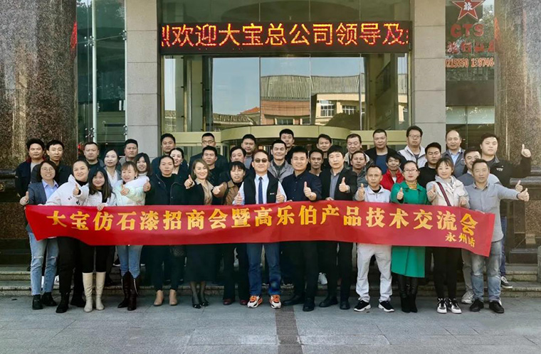 11月30日,大寶仿石漆招商會暨高樂伯產品技術交流會(永州站),在美麗的瀟湘永州市寧遠縣隆重舉行,會議分成大寶仿石漆招商和高樂伯產品技術交流兩大部分。