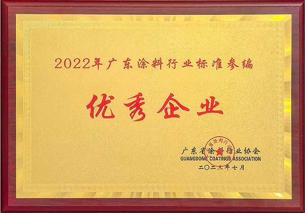 東莞大寶化工制品有限公司憑借過去一年積極響應(yīng)協(xié)會(huì)指引,參與多項(xiàng)行業(yè)標(biāo)準(zhǔn)制定,榮獲“2022年廣東涂料行業(yè)標(biāo)準(zhǔn)參編優(yōu)秀企業(yè)”稱號(hào)。