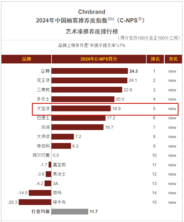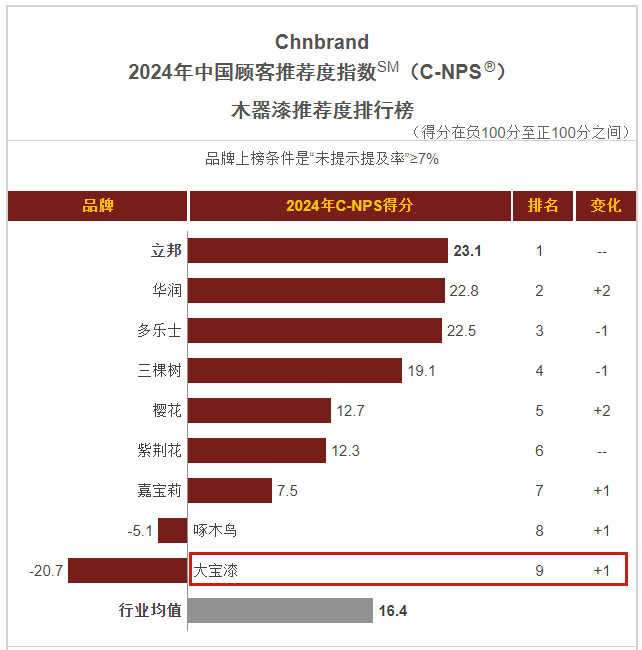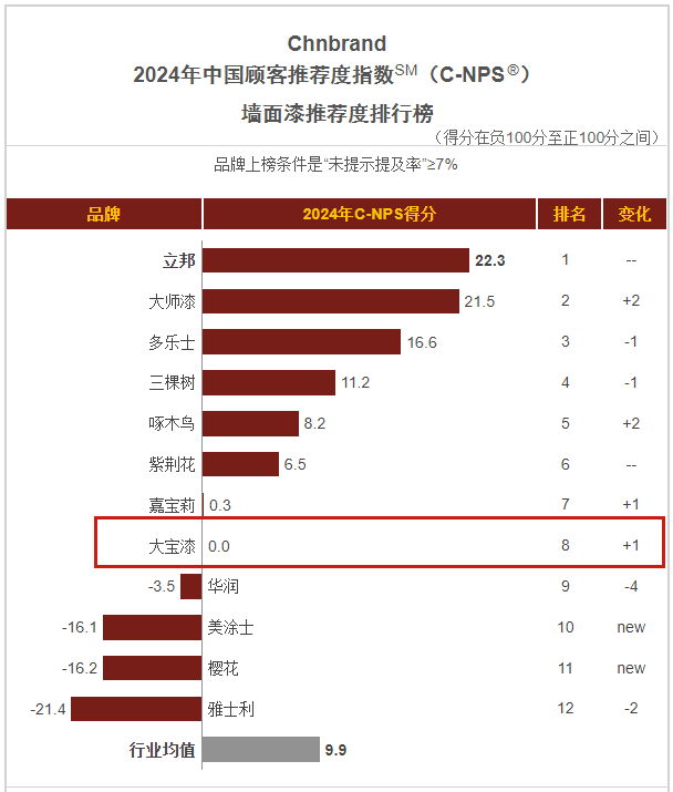 2024年第十屆中國顧客推薦度指數發布,大寶漆排名上升