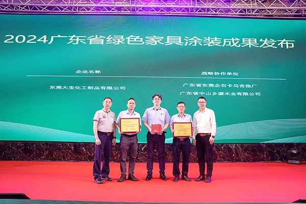 此次會(huì)議大寶漆作為中山迪歐家具集團(tuán)有限公司、東莞企石卡馬吉他廠以及中山鄉(xiāng)源木業(yè)有限公司綠色家具涂裝的戰(zhàn)略合作伙伴,展示出采用環(huán)境友好型UV涂料和水性涂料作為家具、樂器、電器配件的綠色涂裝成果發(fā)布,為綠色環(huán)保制造做出重大貢獻(xiàn)。
