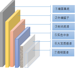 質(zhì)感漆以高品質(zhì)乳液,優(yōu)選天然石英砂為骨料、搭配進口助劑、顏填料(色漿)、通過混合、分散工藝制備而成,本產(chǎn)品具有附著力強、柔韌度好、防開裂性佳、質(zhì)感豐滿、防霉抗藻、耐候性佳和隔音降噪等卓越功能。可通過不同效果的骨料搭配施工,營造出獨特立體的砂壁狀質(zhì)感效果。