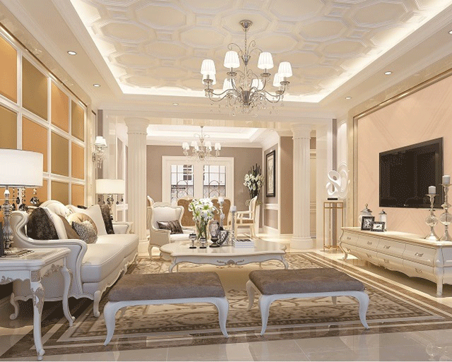 簡歐風(fēng)格的家居多采用曲線及非對稱的線條來裝飾,室內(nèi)的整體線條柔美雅致,能夠展現(xiàn)出居家的立體感。整體空間設(shè)計(jì)劃分時(shí),客廳的空間一般占地面積較大,且客廳中的整體布局為規(guī)則的矩形或正方形,室內(nèi)的裝飾物件也多用柔和的曲線進(jìn)行修飾,如欄桿等多采用波浪形。