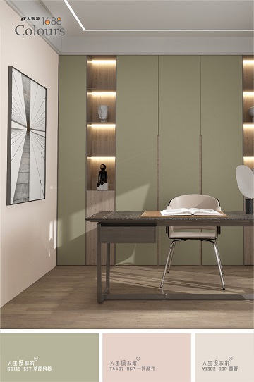 T4407-86P 一笑顏開是極佳的過渡色與背景色,在空間設(shè)計(jì)中,用于主墻面時(shí),它能與木質(zhì)家具相互呼應(yīng),讓整體更具親近感。若點(diǎn)綴在抱枕、窗簾、床品等布藝中,則帶來一種低調(diào)的舒心,讓家中隨處都能拾起笑意。